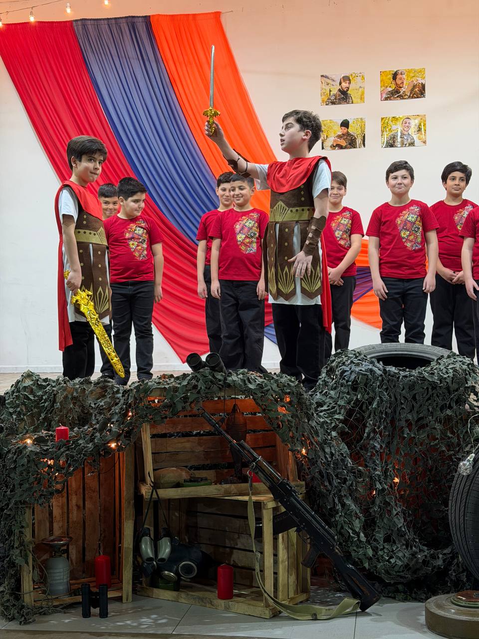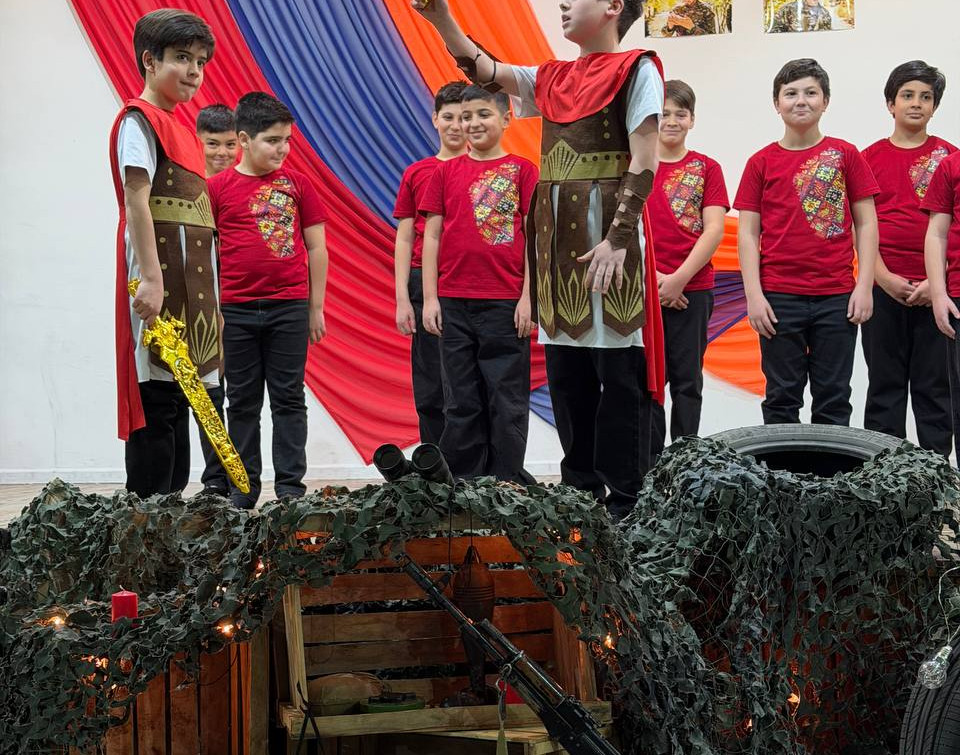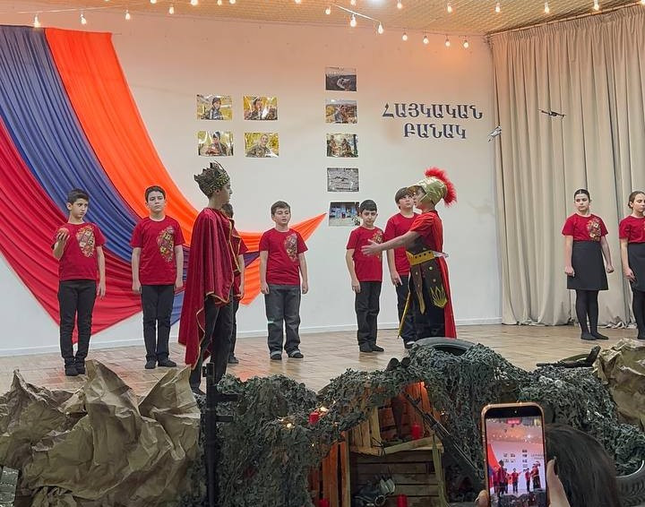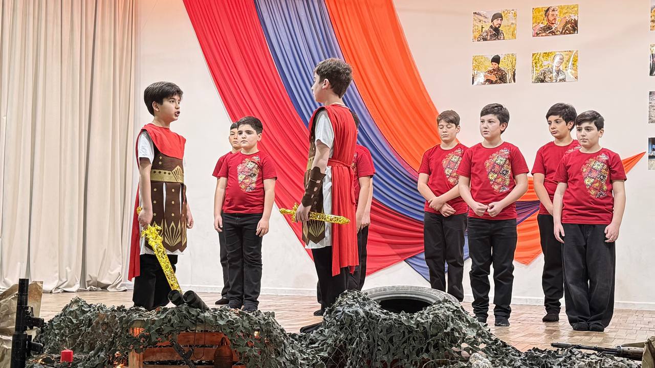 Հենց այդ պատմությունն էին կենդանացրել հինգերորդցիները դպրոցական բեմում՝ բանակաշինության ակունքները հասցնելով մինչ Հայկ ու հայկյան հաղթական աղեղ։ Երաժշտական ու էպիկական նախերգանքով բեմում հայտնված ուսումցիները մեկտեղել էին տարբեր ժամանակների բանակաշինության ռահվիրաներին՝ Հայկ ու Արամանյակ Նահապետներից մինչև Մամիկոնեից Մուշեղ, Գարեգին Նժդեհից մինչև Վազգեն Սարգսյան։ Այս զարմանահրաշ ու ժամանակային թռիչքներով զուգորդումները նպատակ ունեին խառնել պատմության խաղաքարտերը ու թեկուզ մտովի, բայց մեկտեղել Հայոց բանակի անցյալը և ներկան՝ միավորելով անցյալի հերոսական փորձը և ներկայի պատասխանատվությունը։ Ու չնայած ժամանակային այս վայրիվերումներին՝ կերպարների նկարագրի հիմքում այն հավատամքն էր, որ բանակները հզորանում են ոչ միայն զենքերի առատությամբ, այլև հավատքով, պատասխանատվությամբ և մարտական ոգով։ Միջոցառման մեջ առանձնահատուկ տեղ ունեին անցնող չորս տասնամյակների հերոսական մարտադրվագները, որոնք շնչում էին ոչ թե ցավի ու կորուստի, այլ հերոսականության ու վերազարթոնքի ոգով։ Ասվածի վկայություններն էին միջոցառումը հագեցնող ռազմապարերն ու զարթոնքի երգերը։
