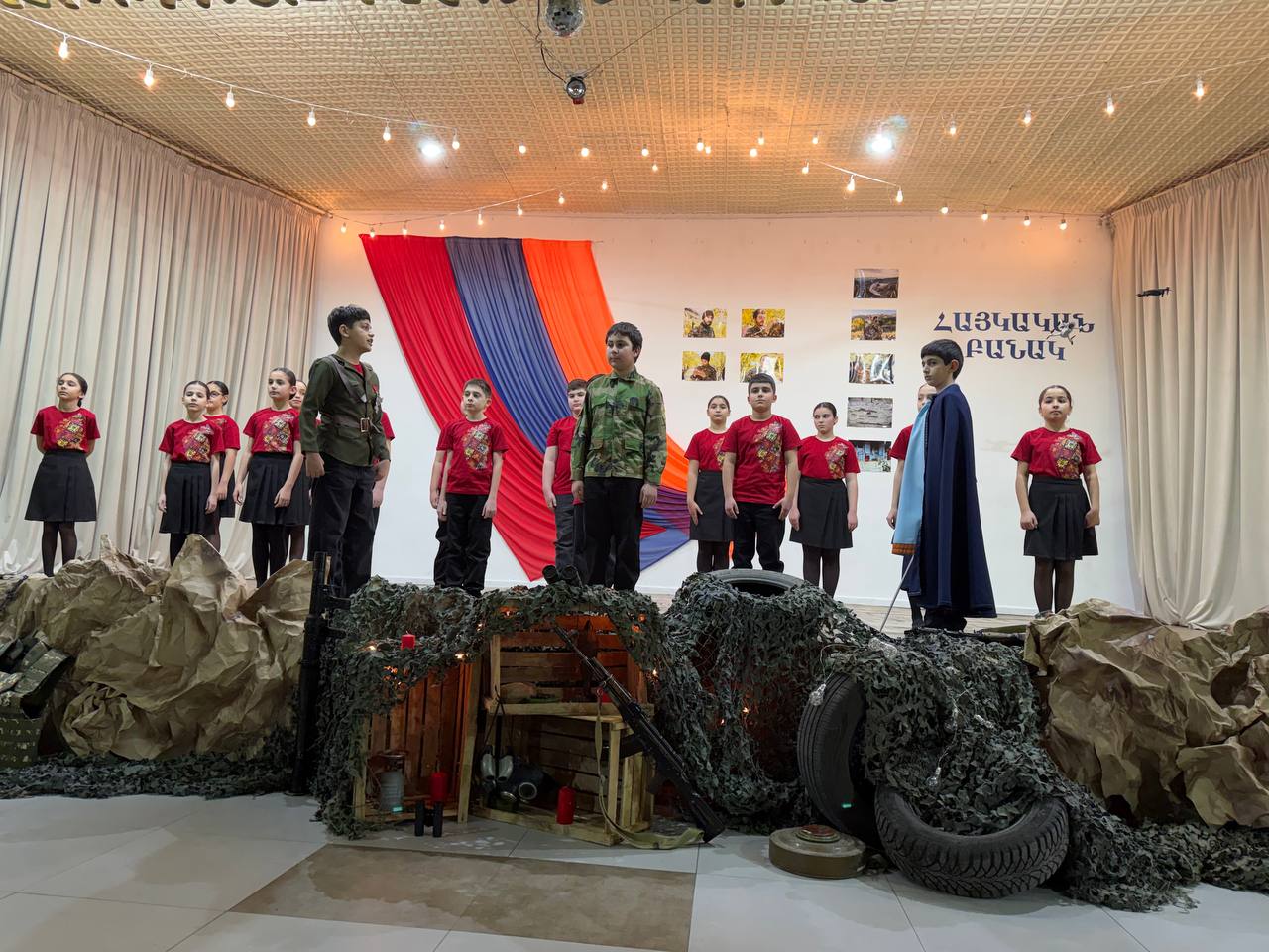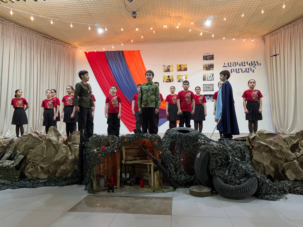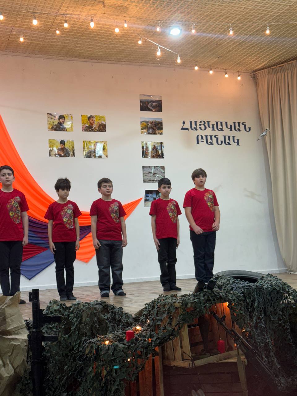 Հենց այդ պատմությունն էին կենդանացրել հինգերորդցիները դպրոցական բեմում՝ բանակաշինության ակունքները հասցնելով մինչ Հայկ ու հայկյան հաղթական աղեղ։ Երաժշտական ու էպիկական նախերգանքով բեմում հայտնված ուսումցիները մեկտեղել էին տարբեր ժամանակների բանակաշինության ռահվիրաներին՝ Հայկ ու Արամանյակ Նահապետներից մինչև Մամիկոնեից Մուշեղ, Գարեգին Նժդեհից մինչև Վազգեն Սարգսյան։ Այս զարմանահրաշ ու ժամանակային թռիչքներով զուգորդումները նպատակ ունեին խառնել պատմության խաղաքարտերը ու թեկուզ մտովի, բայց մեկտեղել Հայոց բանակի անցյալը և ներկան՝ միավորելով անցյալի հերոսական փորձը և ներկայի պատասխանատվությունը։ Ու չնայած ժամանակային այս վայրիվերումներին՝ կերպարների նկարագրի հիմքում այն հավատամքն էր, որ բանակները հզորանում են ոչ միայն զենքերի առատությամբ, այլև հավատքով, պատասխանատվությամբ և մարտական ոգով։ Միջոցառման մեջ առանձնահատուկ տեղ ունեին անցնող չորս տասնամյակների հերոսական մարտադրվագները, որոնք շնչում էին ոչ թե ցավի ու կորուստի, այլ հերոսականության ու վերազարթոնքի ոգով։ Ասվածի վկայություններն էին միջոցառումը հագեցնող ռազմապարերն ու զարթոնքի երգերը։