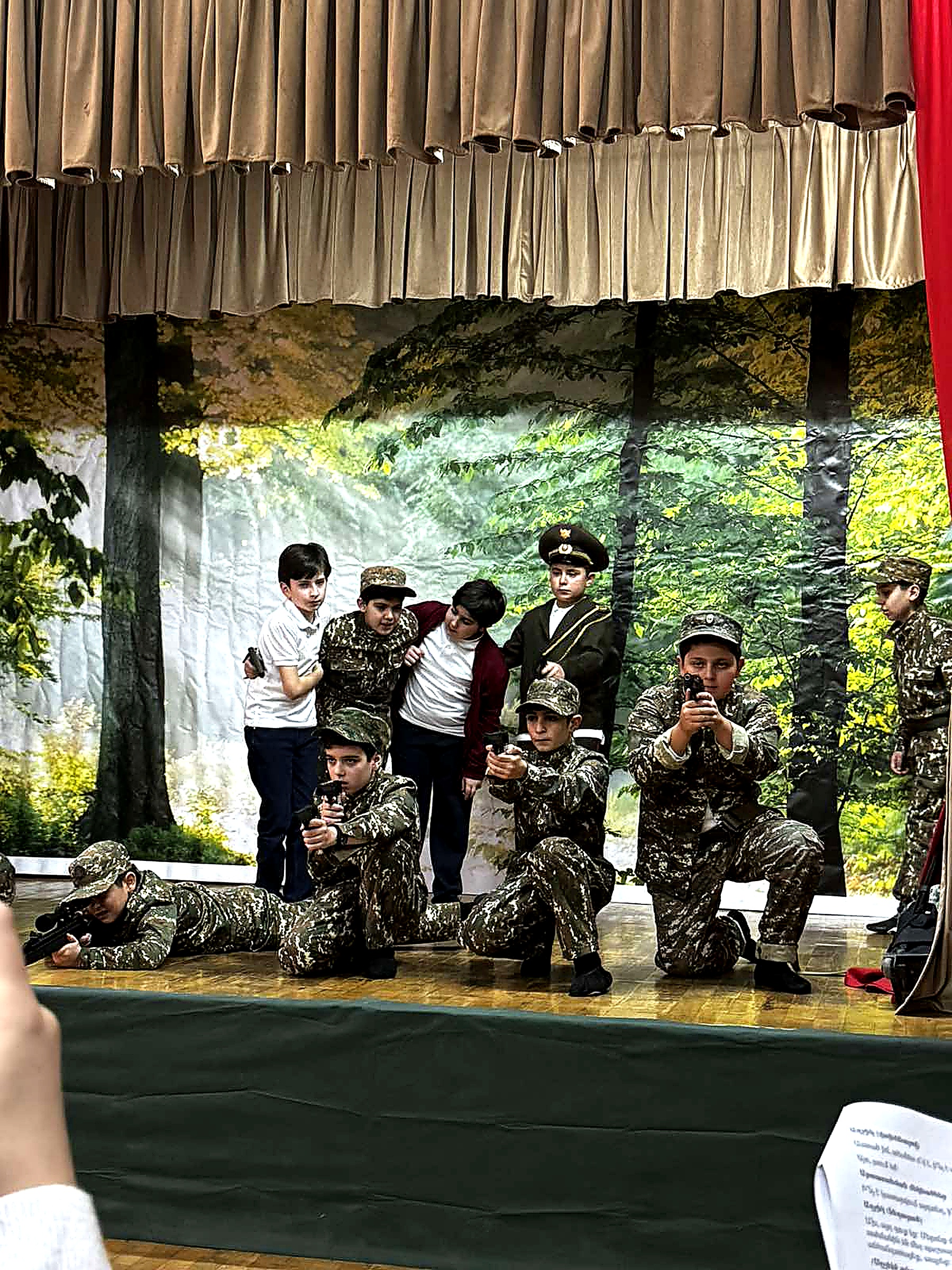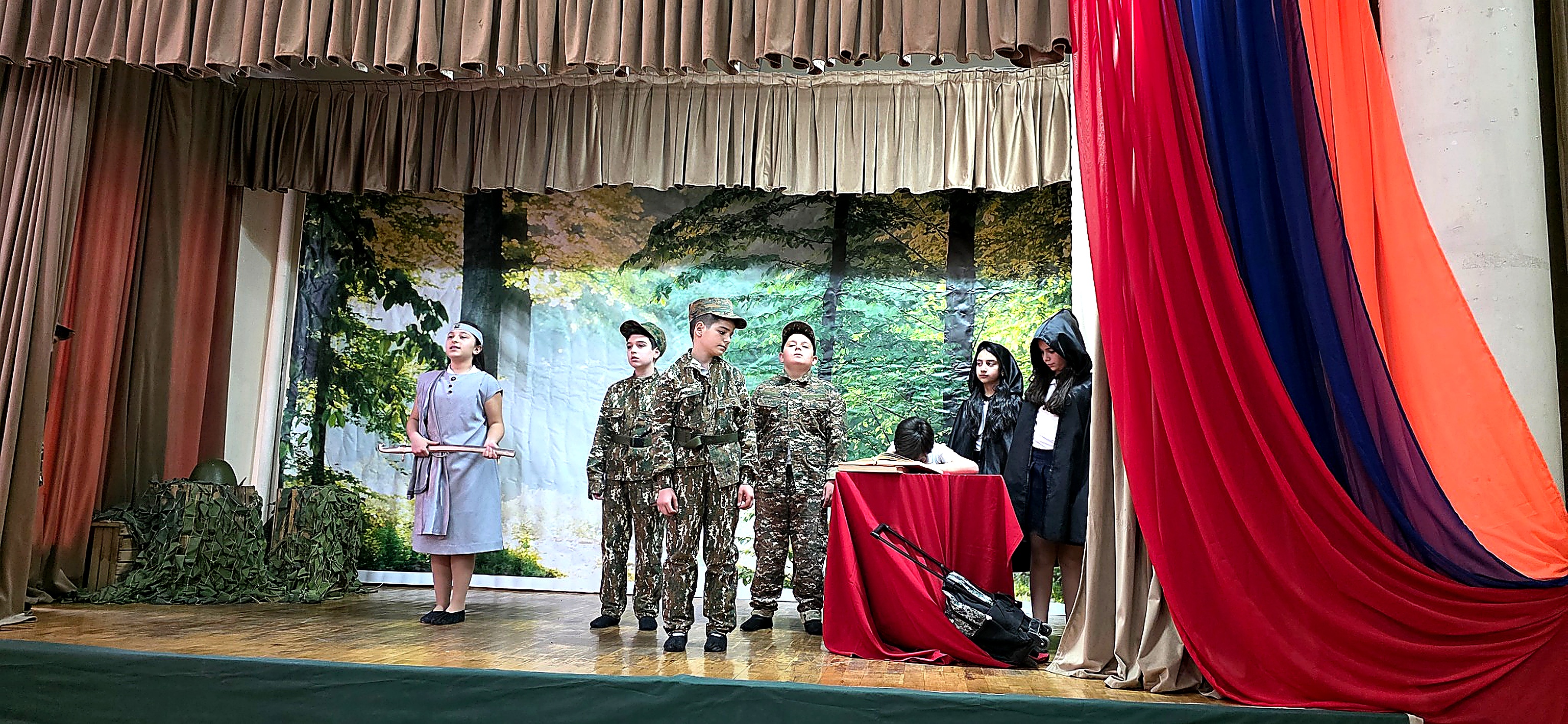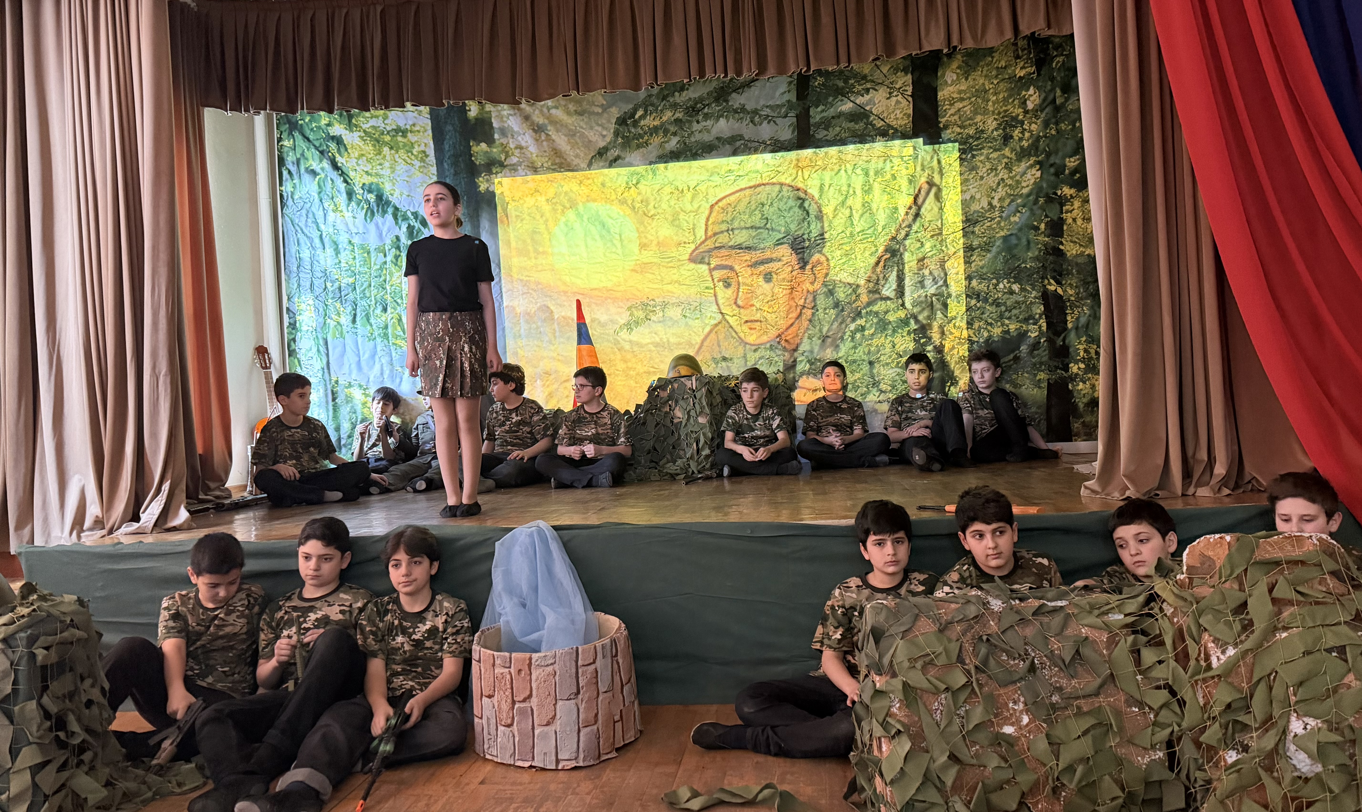 Հայաստանյան դպրոցներում հայրենասիրական դաստիարակությունը միայն դասագրքային գիտելիք չէ․ այն ապրում է բեմում, կերպարների մեջ, կենդանի խոսքի ու ապրումների միջոցով։ Վերջին օրերին հինգերորդցիների կողմից ներկայացված երկու բեմադրությունները՝ «Սահմանին լուսաբաց է» (ըստ Ստեփան Զորյան-ի «Ջրհորի մոտ» պատմվածքի) և «Հպարտությունս քո գույներն ունի…» խորագրերով, դարձան ոչ միայն մշակութային միջոցառումներ, այլև արժեքային կարևոր ուղերձներ՝ խաղաղության, մարդասիրության և պատասխանատվության մասին։