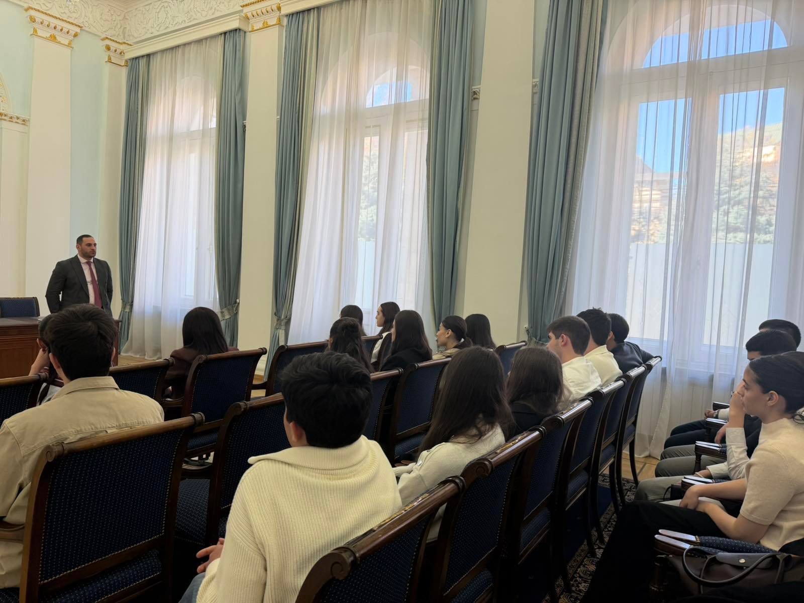 Այցելության ընթացքում աշակերտները հանդիպեցին ՀՀ Նախագահի աշխատակազմի Ռազմավարական նախաձեռնությունների և վերլուծությունների բաժնի պետ Լիպարիտ Մելքոնյանի հետ, ով հատկապես ընդգծեց մասնագիտությունների ընտրության կարևորությունը. նա շեշտեց, որ յուրաքանչյուր երիտասարդ պետք է ընտրի այնպիսի մասնագիտություն, որը կնպաստի պետության զարգացմանը և հանրային հետաքրքրությունների առաջմղմանը։
