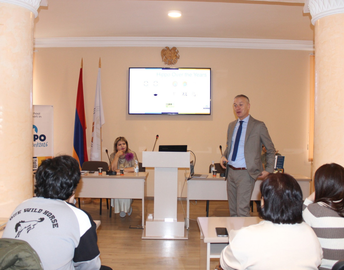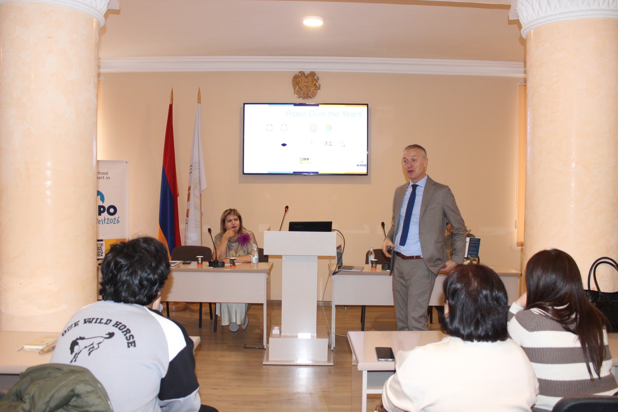 It should also be noted that the official announcement of our school’s membership was made today during a ceremonial event held at the V. Brusov State University of Languages and Social Sciences. The event was attended by the co-founders of the competition, Snezana Mitrovic and Daniele Piacentini, HIPPO’s Armenia coordinator Hermine Melkonyan, as well as English teachers and students from around 40 schools across Armenia.