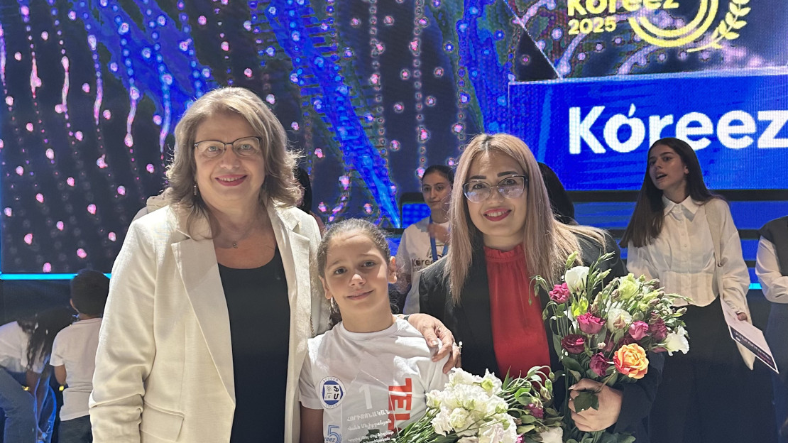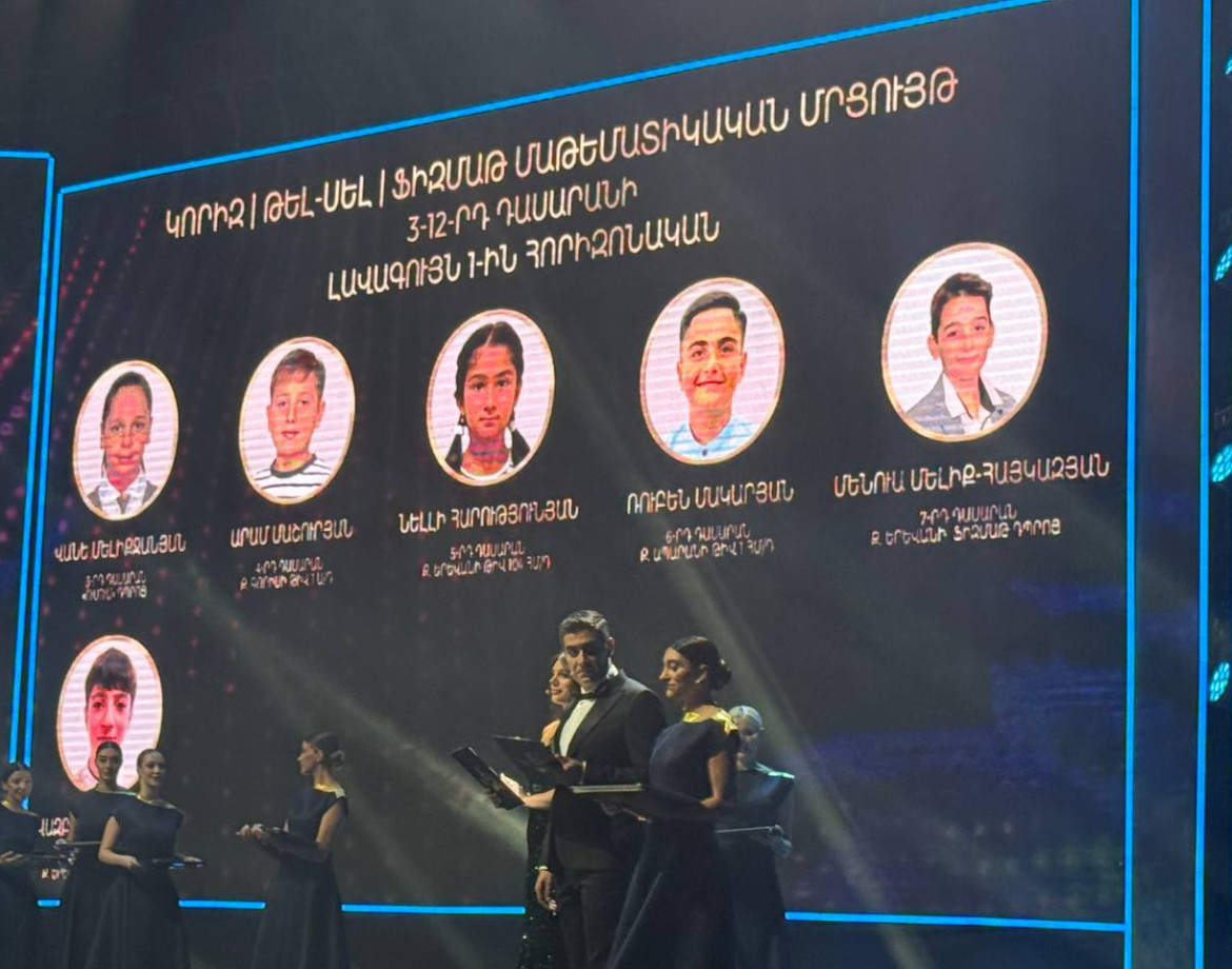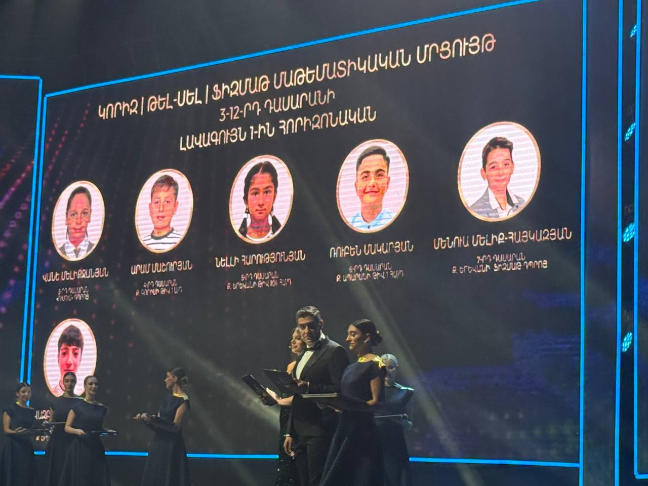 During the grand award ceremony at the Karen Demirchyan Sports and Concert Complex, Vane was joined by Usum’s founding principal H. Navasardyan, school principal S. Tamaryan, teacher H. Nazaryan, and other students who received participation certificates and special awards.