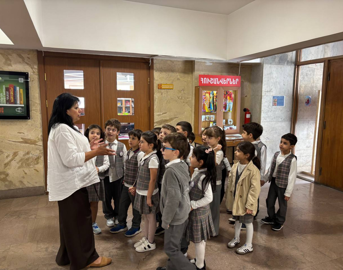 The visit of the new “Usum” first-graders to the Khnko Aper Library was filled with excitement and a sense of tradition. The children were introduced to the library’s history, toured the reading halls, and enjoyed the variety of children’s books on display. Beyond the theoretical side, the trip also provided hands-on learning: students not only saw how books are borrowed and read, but also began to realize that visiting the library should become a natural and lasting habit.